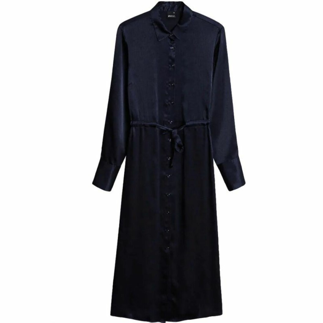 Marinblå skjortklänning i glansigt material från Gina tricot. ANNONS Här kan du köpa den.