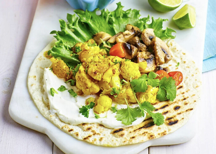 För vad sägs om blomkålstacos med svamp, kokos och ingefärskål med torsk och quinoa, omelettwrap med ost och kalkon, tagiatelle med sparris och räkor, köttbullar kokta i tomatsås, lamm med kikärtor eller en rökt laxsallad? Mums, säger vi!