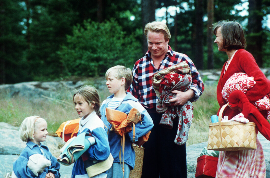 Lotta (Grete Havnesköld) med hela familjen; pappa (Claes Malmberg), mamma (Beatrice Järås), storebror Jonas (Martin Andersson) och storasyster Mia (Linn Gloppestad) på picknick.